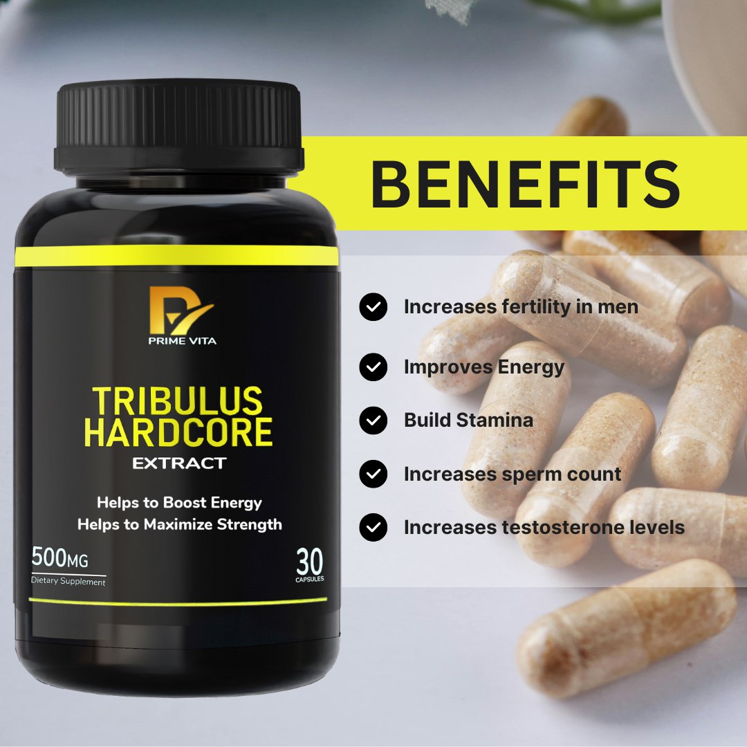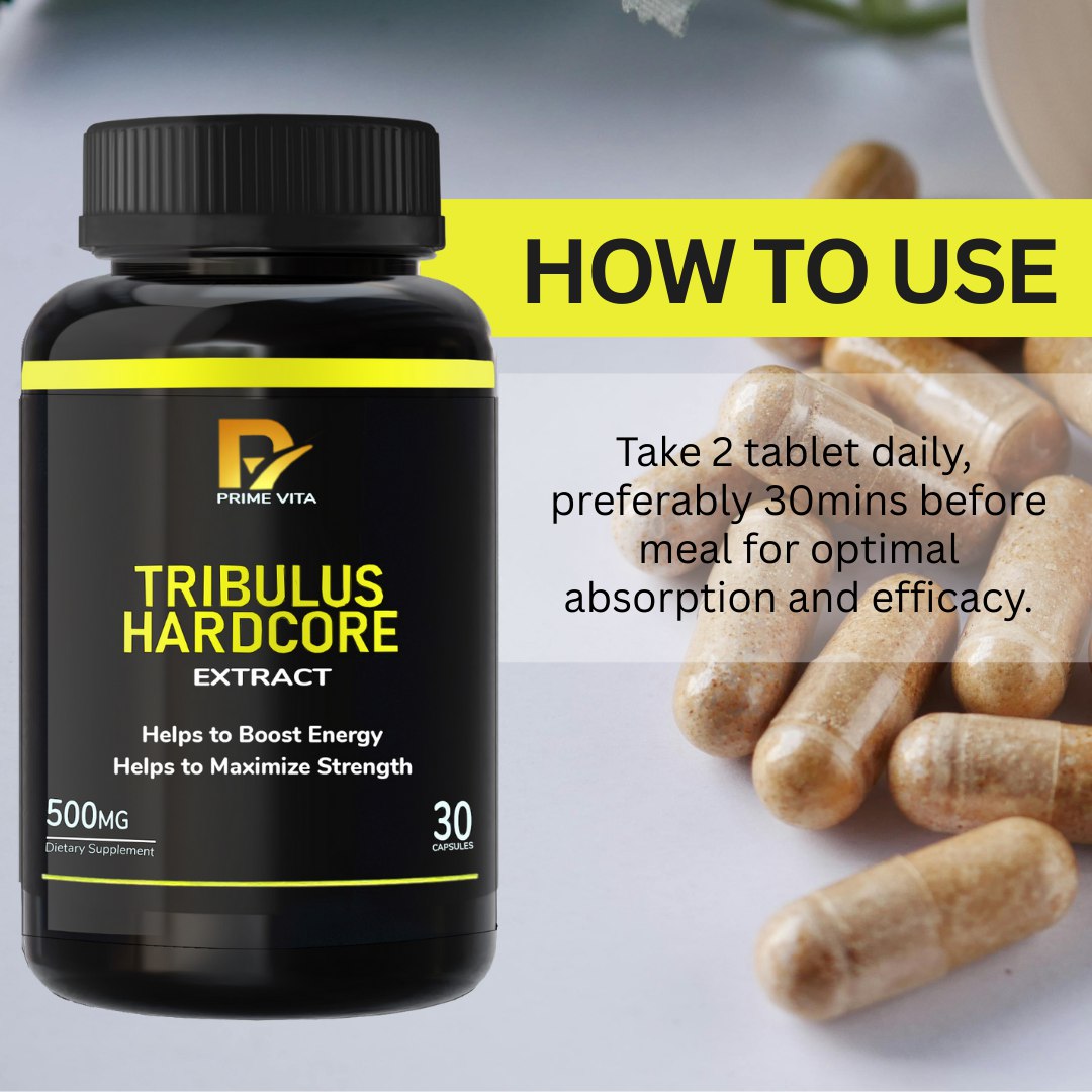 Unleash your full potential with Primevita Tribulus Hardcore Extract, a powerful supplement designed to maximize strength, boosts energy, and support healthy hormone levels. Enriched with 500mg of high-quality Tribulus Terrestris extract, this formula is perfect for anyone seeking to enhance their physical and hormonal wellness.